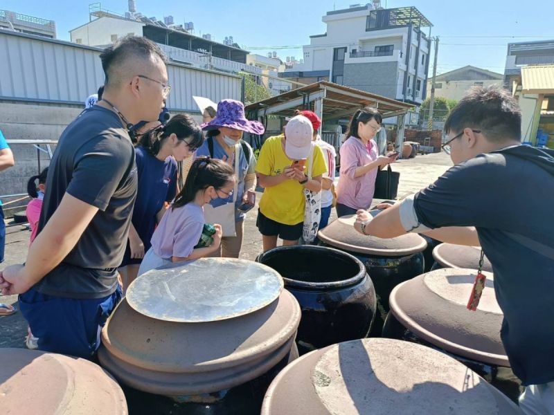 除了銷售產品,新和春對於「教育消費者」這件事也投入極深。與多數觀光工廠不同,他們不以展示樣板作為主軸,而是讓消費者進入真正運作中的製造現場。從豆麴的發酵室,到陶缸日曬的場域,每個步驟都公開透明。「我們希望大家來,不只是走馬看花,而是真的能理解釀造的原理,知道醬油是怎麼來的。」