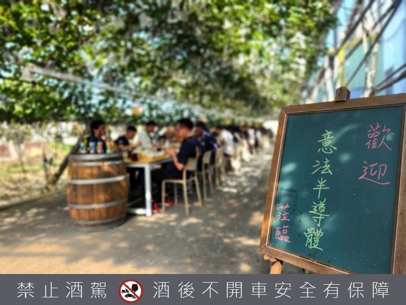 六、七年前,路葡萄隧道開始嘗試在葡萄架下辦餐會。最初只是單純用餐,後來逐步加入園區導覽、品酒與現採體驗,形成三合一的「葡萄宴」。隧道本身具備遮陽布與遮雨設備,克服了戶外活動最大的氣候不確定性,成了「天時地利人和」的絕佳場域。