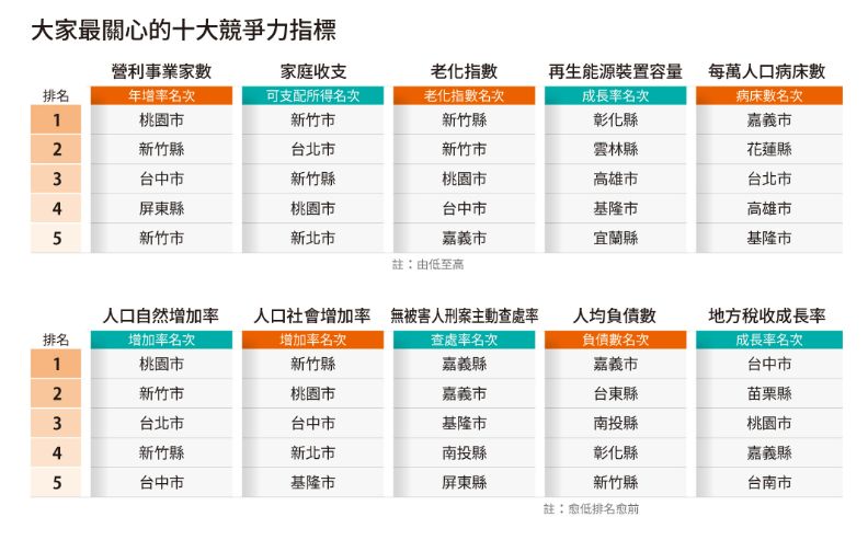 10項關鍵指標,反映施政優勢與治理實力