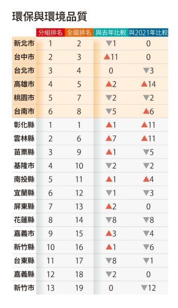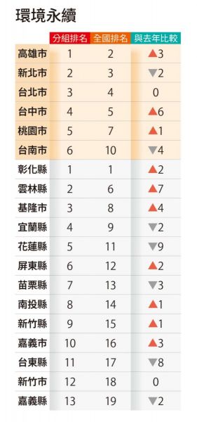 彰化縣則是「環保躍進之城」,不只「環保與環境品質」「環境永續」拿下全台第一,「環保與環境品質」也在4年內進步11名,為一般縣市進步最多。