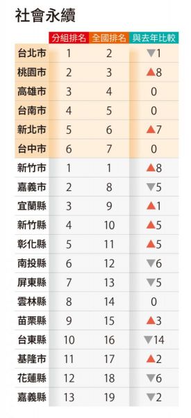 由於外島的澎湖、金門、連江三縣市資料樣本過小,本次調查僅涵蓋本島19個縣市;另一方面,考量直轄市與一般縣市掌握的資源差距,故以六都組與一般縣市組各自排名,較具公平性。