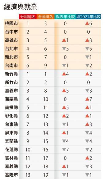 新竹縣「經濟與就業」的表現在全台登頂,為「經濟典範之城」。苗栗縣在「經濟與就業」4年進步7名,成長幅度為全台之冠,堪稱「經濟躍進之城」。