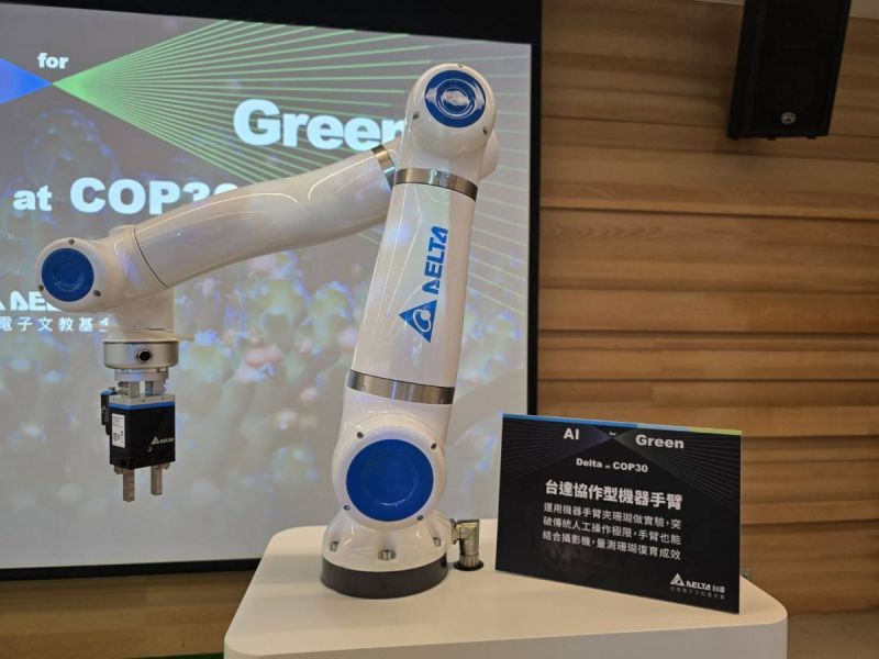 AI技術也被導入珊瑚培育。台達開發機械手臂模擬高溫環境,進行耐熱珊瑚試驗,並以AI模型追蹤生長曲線與共生藻變化,建立「數位珊瑚資料庫」,為全球海洋生態復原提供長期依據。