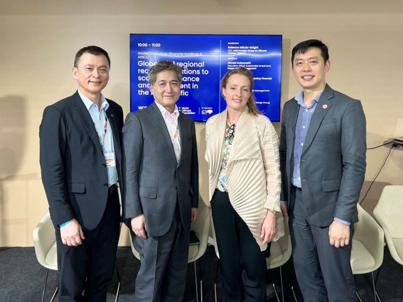國泰金控今年第五次參與COP,連續參與三場重要會議。今年除了國泰金總經理李長庚連線演講,盼與各界同創造氣候與自然的摩爾定律外,國泰世華銀行副總經理温珍瀚也帶隊出席,與亞洲投資人氣候變遷聯盟(AIGCC)及世界氣候基金會共同主辦亞太氣候金融會議,聚焦三項核心挑戰:如何吸引更多資金流向亞太、協助中小企業克服轉型難題,以及在金融體系中納入自然資本思維。