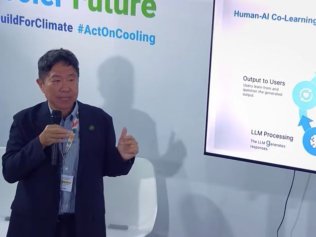 陳楊文受邀在「建築與冷卻主題館」分享台達台達在綠建築、教育訓練與應用AI工具的最新進展。截自YouTube @Buildings and Cooling Pavilion