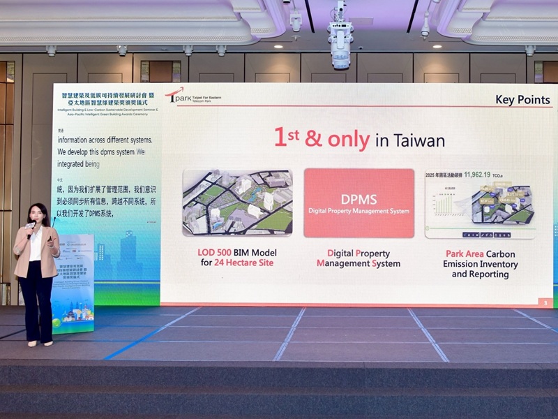 台北遠東通訊園區(Tpark)繼2024年榮獲台灣智慧建築協會主辦的TIBA Award營運類鉑金獎,今年更在協會的推選下,於 2025 年 APIGBA Award 中勇奪營運類鉑金獎,實力獲得國際認證。遠資自2023年參與內政部建築研究所之「智慧化居住空間創意競賽」,榮獲最高等級之金獎肯定,已連續三年站上業界榮耀巔峰。今年代表台灣參賽躍上國際舞台,展現遠資在園區營運管理領域的專業積累與創新實力,達到真正的低碳、永續、智慧建築的落實,成為台灣智慧永續園區的國際標竿。