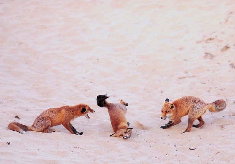 Hit the dance floor – foxes in a breakdance battle——Paula Rustemeier攝