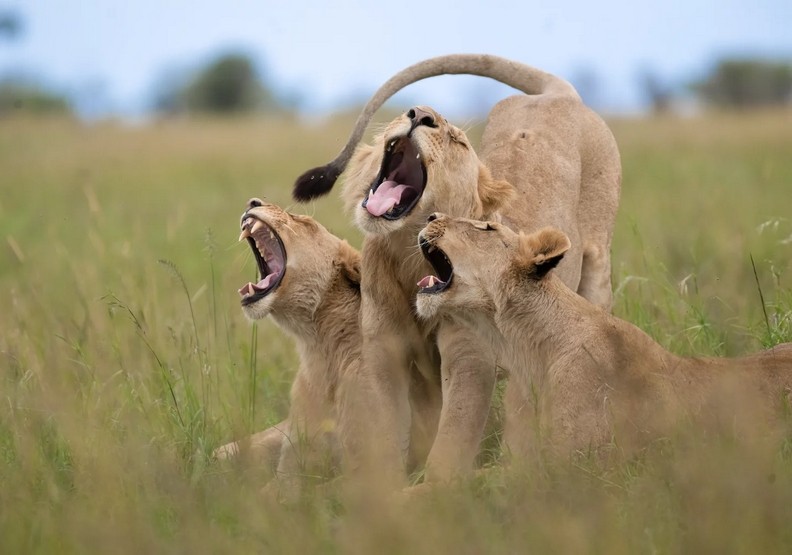 作者分享:「這是一個非常幸運的瞬間,我捕捉到這三隻獅子同時打哈欠的畫面,畫面既滑稽又有趣。」