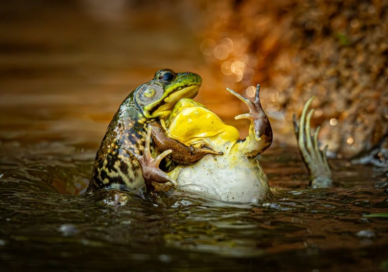 作者分享:「這張照片拍攝於2023年初春,在那個季節,所有公青蛙都會出現在池塘裡劃分領地。我帶著相機趴在地上,一邊觀察牠們、一邊拍照。直到回到家檢視影像時,我才注意到這一張,並意識到自己有多喜歡它。