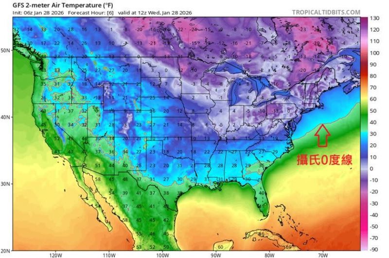 鄭明典表示,這次美國不只冷,降雪範圍和降雪量都很可觀。取自鄭明典臉書
