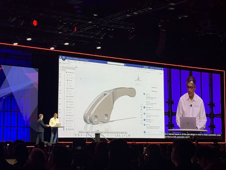 而後庫瑪打字問LEO,「你能從這張圖,幫我建立草圖嗎?」只是一個Enter按鍵下去,瞬間轉為可用的草圖,甚至尺寸都能即時編輯。接著,又是一個指令、一次Enter。幾秒後,一個完整的3D模型出現在螢幕上。「這不是表面模型、不是示意圖,而是完整、可操作、可修改的參數化模型檔」庫瑪特別強調地說。