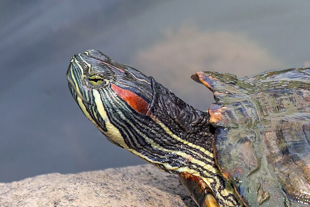 紅耳龜俗稱巴西龜,因頭側紅斑易辨識。生態觀察者指出,牠們體型明顯較本土龜類大,對人類接近不畏懼,顯示已適應當地環境。由於缺乏天敵,加上繁殖力強,恐對斑龜與柴棺龜等原生物種造成排擠。