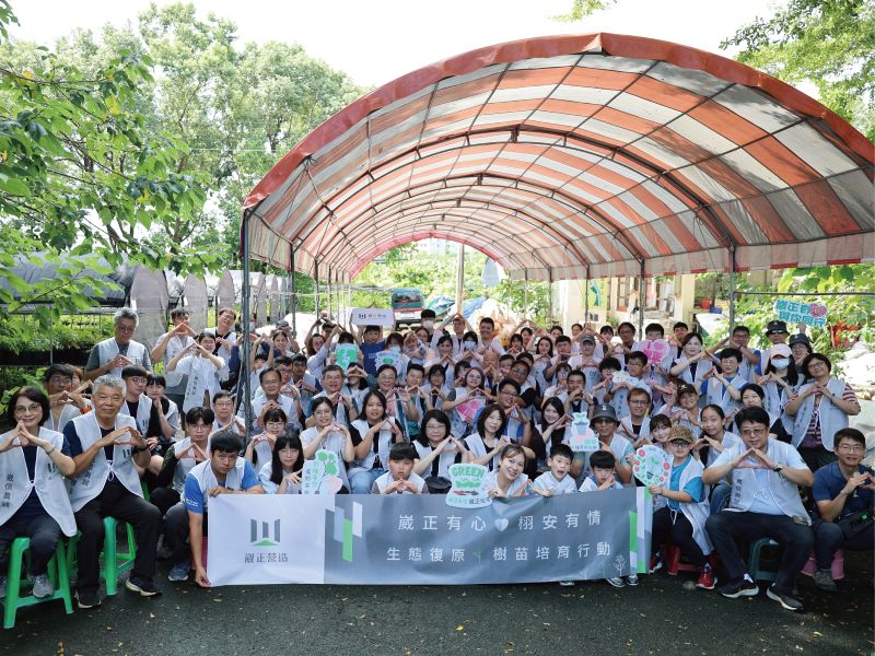 在這些復育行動中,員工參與同樣不可或缺。崴正營造每年舉辦志工日,邀請同仁與家屬一同投入植樹與苗木培育工作。截至2025年底,專案已持續推動近四年,這股綠色能量已凝聚近400人次。