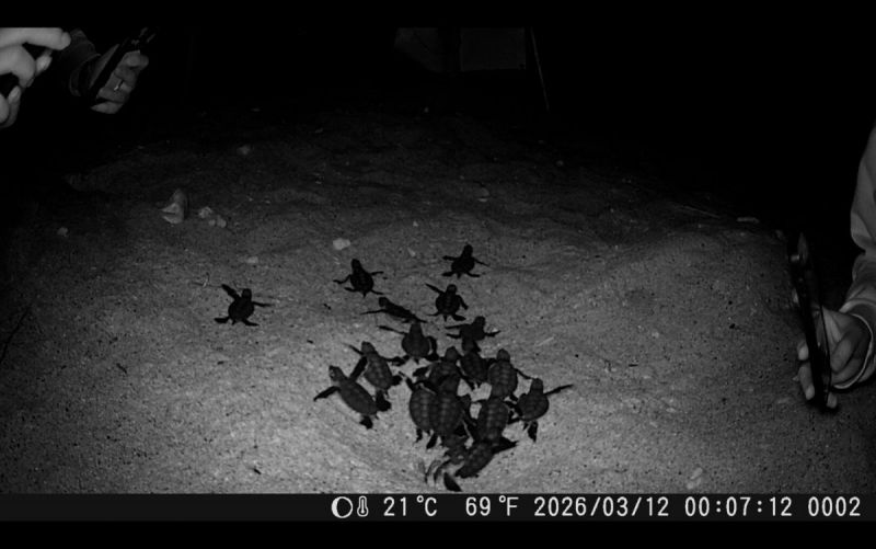 海洋委員會海洋保育署說明,分布於台灣周邊的綠蠵龜產卵季節主要集中每年5月至10月,高峰期為7月至8月,而該母綠蠵龜(編號TWOCA0605)於民國114年12月間,在小琉球蛤板灣產下第一窩卵,經過83天孵化期,陸續迎來70隻稚龜破殼而出,並自行爬入大海。