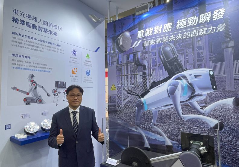 總經理高飛鳶在自動化展指出,東元開發的「機器人關節模組」已經進入少量試產,並與工研院合作,具備高扭矩密度、輕量化與模組化等特性,已經吸引企業預約,初期應用將落在「機器狗」領域,象徵東元逐步邁向機器人核心技術的供應商。